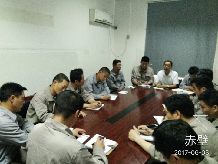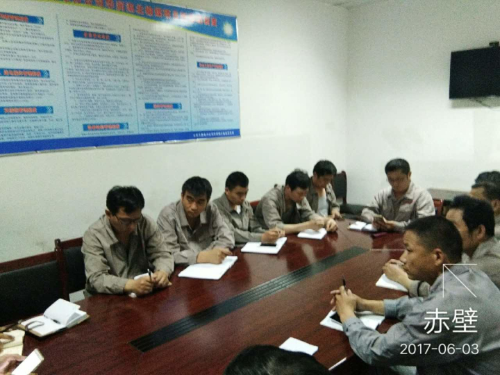 Taishan electric power construction company deputy general manager Wang Chuanying in Hubei project organized the coal handling project department, gray sulfur project leader above personnel on-site safety work will be implemented.